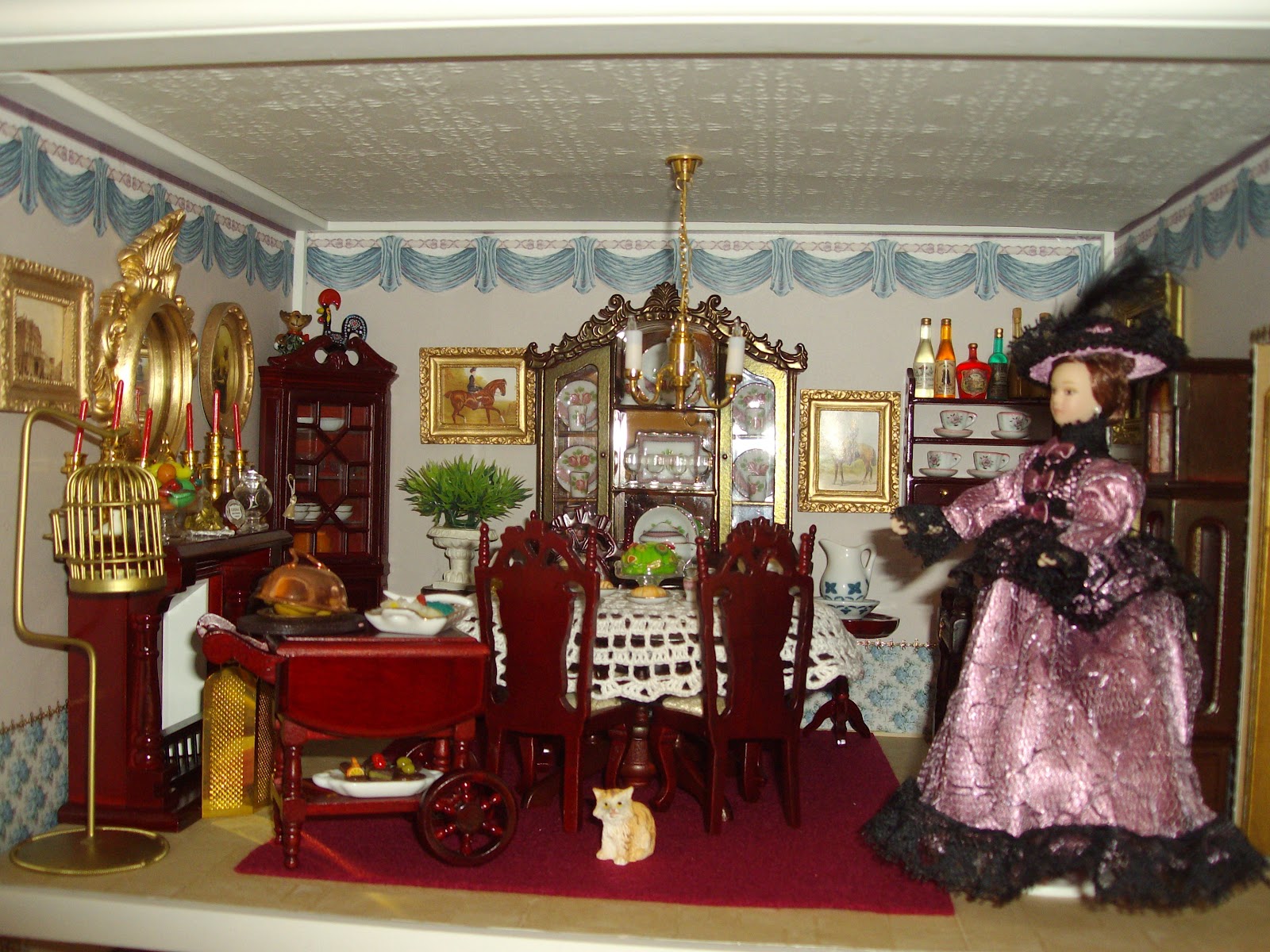 Esta é a Casa Victoriana que certamente muita gente conhece pois cá em Portugal já houve pelo menos duas edições. A casa pertence à primeira edição assim como parte de algum mobiliário. Decidi que não ia fazer, mas quando saiu a segunda não resisti e completei. Os papeis interiores foram todos modificados assim como algum mobiliário. Foi decorada por mim, comprei algumas coisas mas a maior parte fiz. Já ma quiseram comprar, mas não consegui, pois estes objectos em nossas casas ganham alma. Esta decididamente veio para cá ficar.